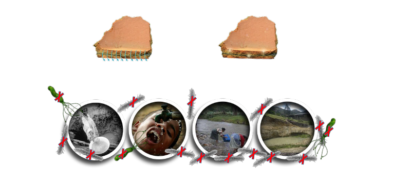 A través de esa intrincada red de microscópicos pasadizos el filtro va dando paso al agua, pero NO a los organismos contaminantes que ella lleve y cuyo tamaño promedio es superior al de los poros del filtro, dejándolos allí atrapados.