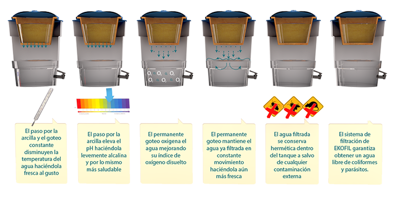 y el mantenimiento del filtro de arcilla EKOFIL.